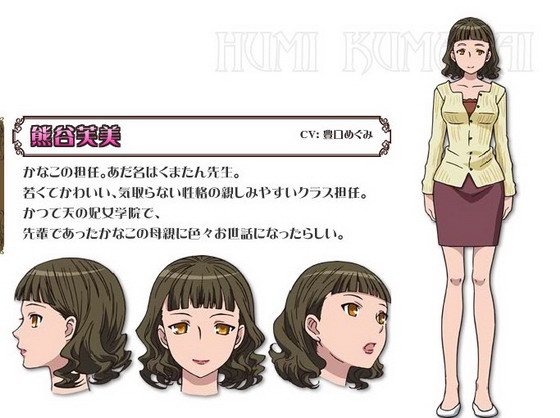 加奈子的班主任。外号小熊老师。是一位年轻可爱不摆架子容易亲近的班主任。曾经在妃女学院收到前辈即加奈子母亲的照顾。