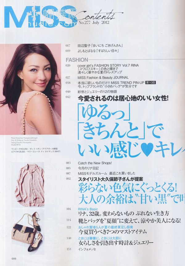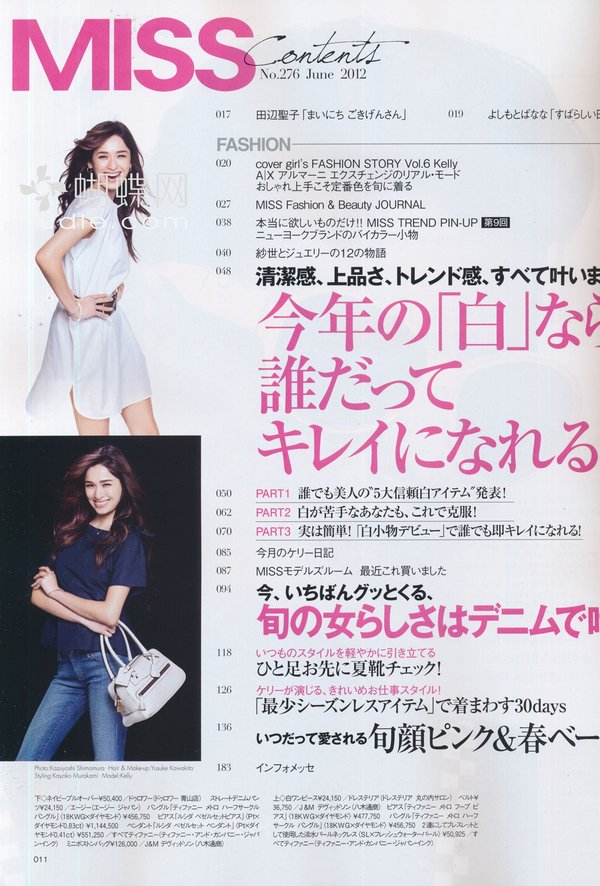 《Miss》,月刊。又一份经典畅销的职业女性时尚杂志。从职业女装到时尚女鞋,从精美彩妆到精致女包,配五彩缤纷的女性饰品,无论是飘洒的裙子还是庄重的裤子都尽显了职业女性的华贵与现代。相信爱美的白领女性一定会痴迷于该本精美的时尚杂志!