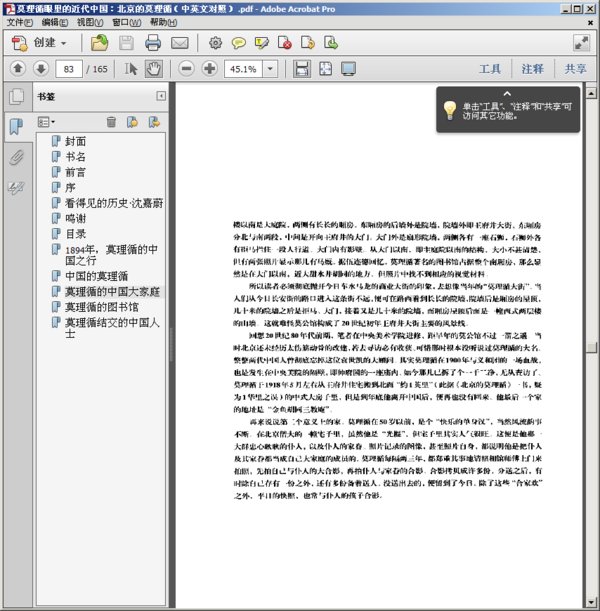 旅澳历史画家沈嘉蔚从中精选主要部分并作了必要考证。本画册分为《北京的莫理循》、《世纪之交的战乱》、《目击变革》三册,含庚子事变纪实、20世纪初中国近代化变迁、清末民初民情风俗、莫理循与中国仆人的友谊、莫理循与清末民初在华洋人等专题内容。除老照片外,编者还精选了少量文物照片,如孙中山于1906年印的钞票;大清邮票上加盖中华民国邮戳的明信片;李鸿章、辜鸿铭等人的大红名刺等。此书为历史工人和者与爱好者提供了历史文献的文字所不能提供的直观图像资料,适合专业与业余研究者、各类图书馆与文科院校作为常备工具书。