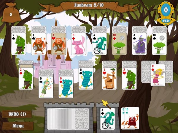 游戏的画面清新可爱,有趣的仙境角色制作的纸牌会让你暂时忘却烦恼而进入这个童话世界之中,游戏采用传统的接龙玩法,在翻牌后如果有可以对应的牌位置会闪烁提示,方便玩家寻找目标。