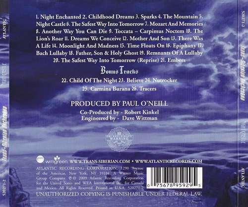 总的来说,Trans-Siberian Orchestra 并不算是传统意义上的前卫金属和交响金属,毕竟他们的发源地是美国,不是欧洲,另外他们受最多影响的是百老汇音乐剧,因此相对于其他乐队来说,Trans-Siberian Orchestra 反而真的得到了歌剧这种音乐类型的真传,即便采用了真管弦乐队和交响人声,也少了些古典音乐的那种震撼,可是Trans-Siberian Orchestra 重在这种戏剧化的表演上,与King Diamond 的表现手法倒有点相似,因此大家不要当他们是一支前卫金属和交响金属乐队来听,否则会误导你们,进而错过一张精彩的好唱片~~