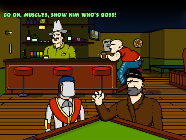 《Da New Guys: Day of the Jackass》是一款传统的点击式冒险游戏,剧情比较有趣:搞怪三人组中的Brain在某摔跤比赛意外获得冠军腰带,随后便被绑架,剩下的两位Simon和Defender开始了营救的旅程。