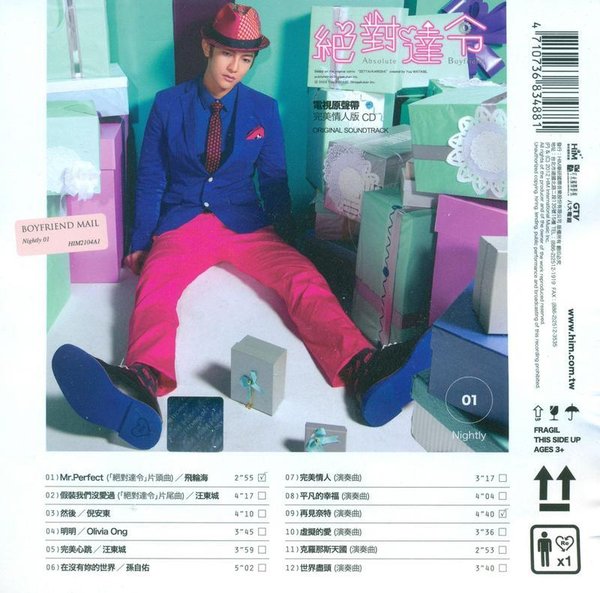 根据日本漫画家渡濑悠宇的漫画《绝对彼氏》改编的偶像剧,日本于2008年翻拍过日剧《绝对男友》。由八大电视与韩国无线台合拍,由汪东城与韩国女星具惠善主演。在原声带上绝对精彩幕后阵容王治平、吕禎晃、郭文宗、Skot Suyama、张简君伟、JerryC、樊哲忠、蓝小邪、陈信延协力联手为乐坛新声代生力军飞轮海、汪东城、Olivia、倪安东、孙自佑打造片头片尾曲、插曲及多首精致演奏曲。