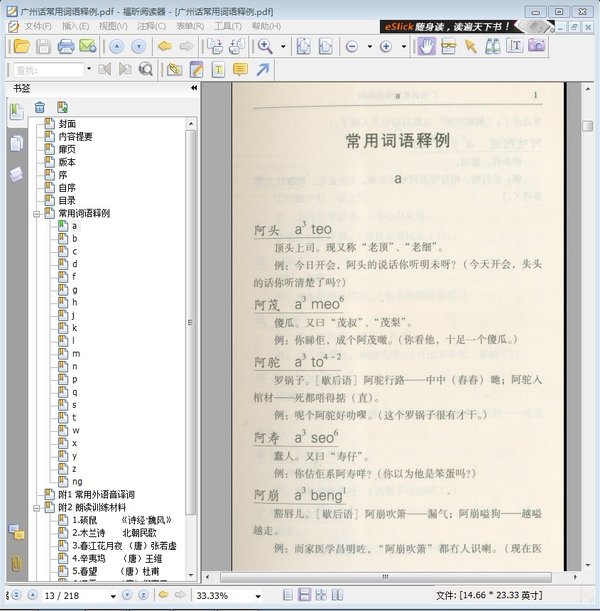 该教材每个词语除了有注音及详细的解释外,还附有例句,便于自学、训练。