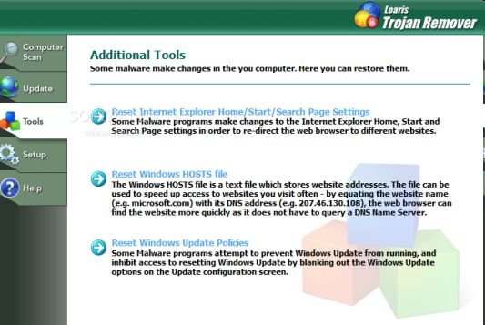 软件的功能菜单放置在UI的左边,总共也只有5个标签页,去除最后的“Help”,仅仅只有4个选项,分别为“Computer Scan”,“Update”,“Tools”,“Setup”。看上去是不是也觉得非常的简单易用呢?我相信只要懂点英语的人都能够顺利使用该软件。