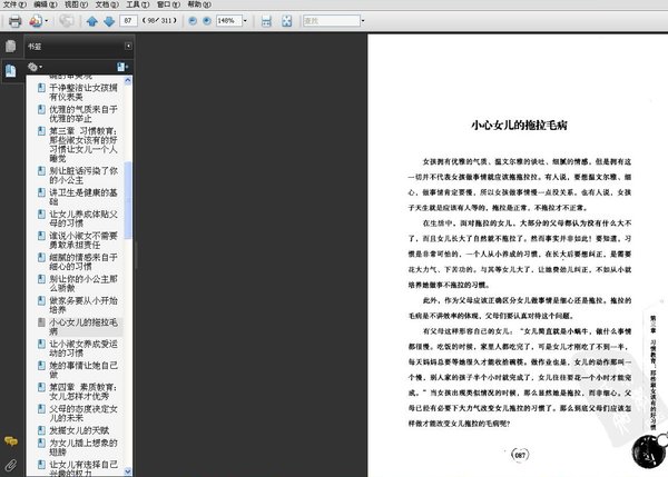 : 第一章 男女有别:根据生理和心理特点来指导女儿 第二章 美的教育:让女儿充满情调地生活 第三章 习惯教育:那些淑女该有的好习惯 第四章 素质教育:女儿怎样才优秀 第五章 情商教育:父母给女儿一生的呵护 第六章 财富教育:帮女儿树立正确的金钱观、消费观和理财观 第七章 情感教育:女儿心里的那些秘密 第八章 社会教育:让女儿学会正常的人际交往