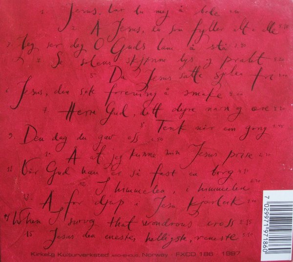 : 01 JESUS,lær du meg å bede-Folketone fra Nord-Møre 02 Å JESUS,du som fyller alt i alle-Melodi:Aage Samuelsen 03 Jeg ser deg O Guds lam å stå-Norsk folketone 04 Se solens skjønne lys og prakt-Norsk folketone 05 Da Jesus satte sjelen fri-Melodi:J.M.Black 06 Jesus,din søte forening å smake-Norsk folketone 07 Herre Gud,ditt dyre navn og ære-Norsk folketone 08 Tenk når ein gong-Folketone fra Sykkylven 09 Den dag du gav oss-Melodi:C.C.Scholefield 10 Å at jeg kunne min Jesus prise-Norsk folketone 11 Vår Gud han er så fast en borg-Melodi:Martin Luther 12 I himmelen,i himmelen-Norsk folketone 13 Å for djup i Jesu kjærleik-Melodi fra Wales 14 When I surway that wondrous cross-Melodi:Edward Miller 15 Jesus den eneste,helligste,reneste-Melodi:Caroline Volla Sørlie