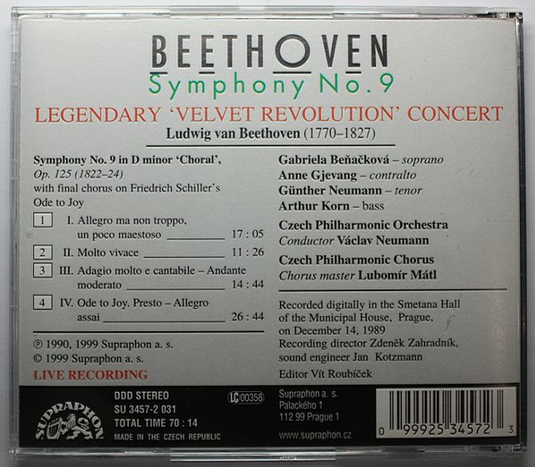 瓦茨拉夫.纽曼 捷克爱乐乐团&布拉格爱乐合唱团 女高音 Gabriela Benackova 女中音 Anne Gjevang 男高音 Gunther Neumann 男低音 Artur Korn 1989年12月14日布拉格市政大厦斯梅塔那大厅实况演出录音