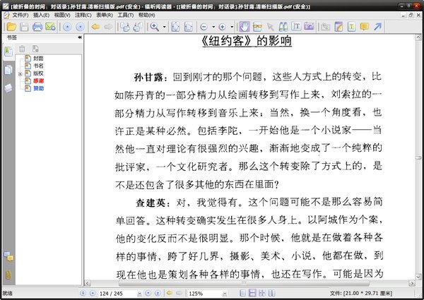 该书收录了孙甘露上世纪90年代至今与多位友人的二十五次假日对话,非凡的生活露出冰山一角。文学影响了他看世界的方式。作为中国当代先锋文学的代表作家之一,他代表的是“比缓慢更缓慢”的探索,书的封面有两只酷毙帅呆的蜗牛。他由衷地希望自己“落伍一点、慢一点、少一点”,“将内心的声音翻译出来”。此书的对话使人立马安静,也反映对话双方不同时期所关心的问题,与沧海桑田的社会变化互为见证,有兴趣的读者可以据此隐约了解一个先锋作家“介入或者疏离时代的缘由”。