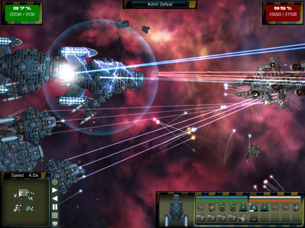 这是一个独特的战略游戏,具有即时战略与塔防的混合风格,玩家将扮演庞大太空舰队的最高指挥官,你可以自定飞船的构造,摆放飞船的位置,下达命令,然后观看绚丽的射击与爆炸。移动和爆炸时会有动态模糊效果。支持自定义地图。