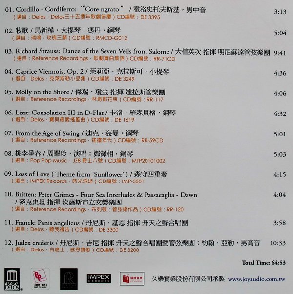 CD制作: 台湾久乐实业股份有限公司承制