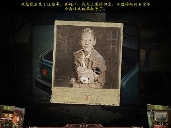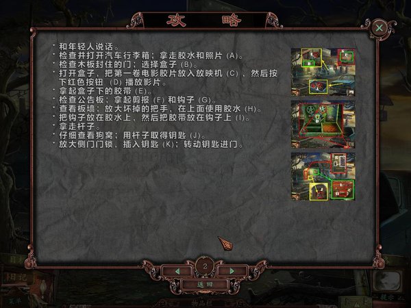 开发商:ERS Game Studio 发行商:Bigfish Games 系统需求: OS: Windows XP/Vista/Win7 CPU: 1.4 GHz RAM: 1024 MB DirectX: 9.0 Hard Drive: 590 MB 【游戏介绍】 在一次公路旅行中,你朋友的女儿被一个神秘男子在半影汽车旅馆绑架了,这个旅馆在50年前曾经发生过奇怪的事件成为了谋杀现场。你必须进入这个神秘而疯狂的汽车旅馆找到女孩,并且解开困扰半影家族后裔的谜题。 【游戏评测】 画 面: 游戏的动画情节真实动人,将真实的场景,演员和游戏完美的结合在了一起,你将经历的不仅仅是一款解谜游戏,而是一个以解谜线索而联系起来的冒险故事,逼真的细节和丰富的场景动画让游戏的效果更为突出。 声 音: 游戏的音乐效果浓重丰厚,将小镇破旧旅馆场景的神秘感凸显了出来,也调动了玩家深入探索的情绪。 上手度: 游戏的画面、音乐,故事情节和上手都表现的很完美,传统的解谜玩法,难度适中,要寻找的物品和故事情节很好的结合在一起,你要观看电影卷轴,从游戏故事中获取重要信息。 创 意: 游戏的图形表现的很好,既不是耀眼华丽的场景,但也不会让人感到困难,良好的表现力会让你知道什么是潜伏在角落,而更加便于寻找。 可玩性: 游戏的制作精良,评价也很不错,是一款非常值得一玩的解谜新作,游戏还包括典藏版的壁纸,屏保,原声的音乐和概念艺术。 【汉化人员】(转载请保留) 猛犸汉化组荣誉呈献 网址:81256.com 汉化考核qq群:69357062 汉化交流qq群:1367569