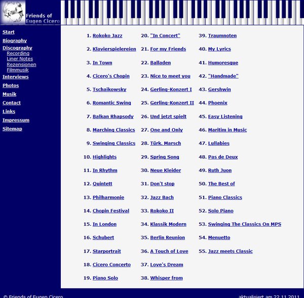 Eugen Cicero (June 27 1940 in Cluj , Transylvania, Romania, December 5th 1997 in Zurich , Eugen actually Ciceu) was a classically trained jazz pianist. He became famous with his jazz interpretations and arrangements of baroque, classical and romantic works that made him famous during his lifetime.