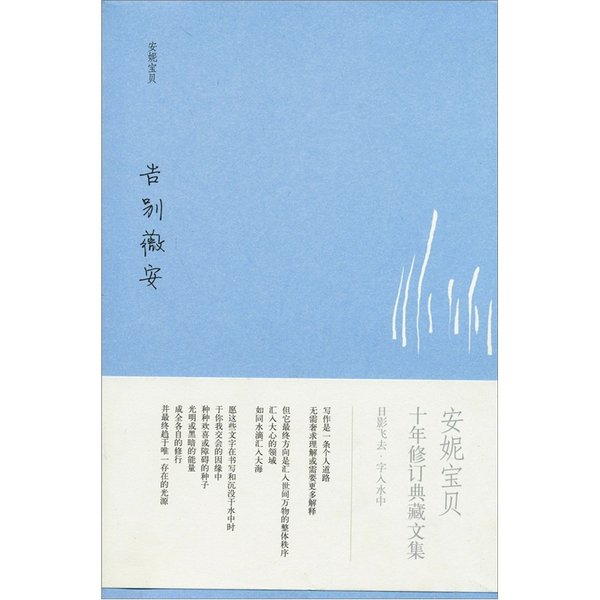 作者介绍:安妮宝贝,作家。曾任职中国银行、广告公司、网站、杂志社等。1998年起发表小说,题材多围绕城市中游离者的边缘生活,探索人之内心与自身及外界的关系。至今出版长篇小说、短篇小说集、摄影图文集、随笔集《告别薇安》《蔷薇岛屿》《清醒纪》《莲花》《素年锦时》等各种著作。文体自省疏离,风格清洌,拥有大量读者。作品均持续进入全国各类畅销书排行榜,更被引介到香港、台湾、越南、韩国、日本、德国、英国等地区和国家。现居北京。