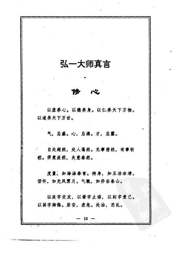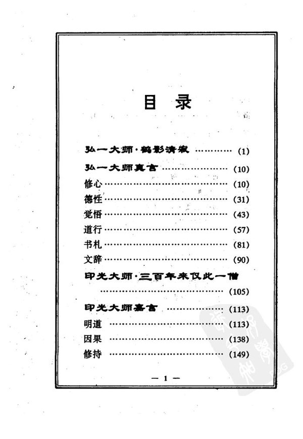 : 序 前言 目录 弘一大师 鹤影清寂 弘一大师真言 修心 德性 觉悟 道行 书札 文辞 印光大师 三百年来仅此一僧 印光大师嘉言 明道 因果 修持 净土 德育 问答 辞札 附录一 附录二