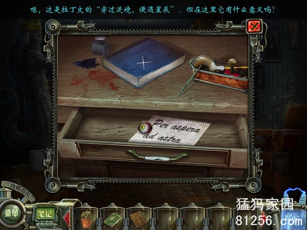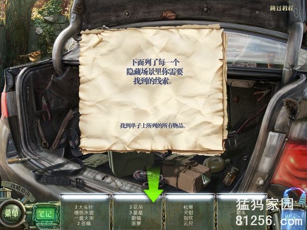 游戏规则和同类作品类似,上手十分便捷。英文词条中提示着画面中隐藏的物体,你只要按照提示来寻找即可。游戏中没有过关时间限制,包括蓄时的提示,场景中的闪光点也会提示玩家谜题的位置。