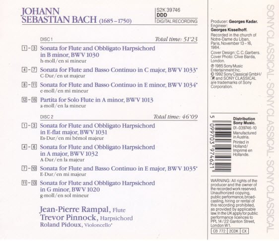 专辑英文名: J.S. Bach - Sonatas for Flute, Partita for Solo Flute