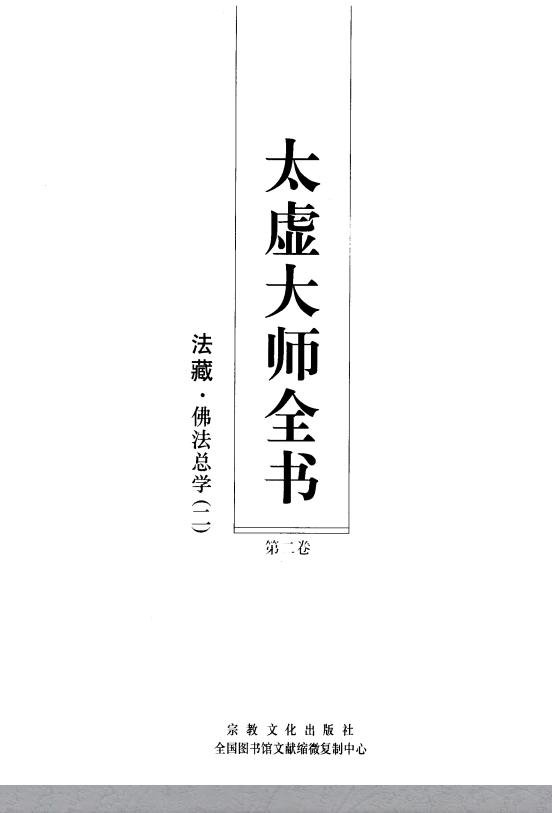 由宗教文化出版社、全国图书馆文献缩微复制中心出版的《太虚大师全书》,主要选自虚大师创办的刊物《海潮音》,同时参照1946年出版的《太虚大师全书》,在尽量保持原著内容的基础上适当修订整理。全书共分法、制、论、杂4藏共20编1440多篇目,700多万字,分35册,大32开,豪华精装。为了让这部“真经”普度众生,《太虚大师全书》采用简体横版方式,方便阅读。