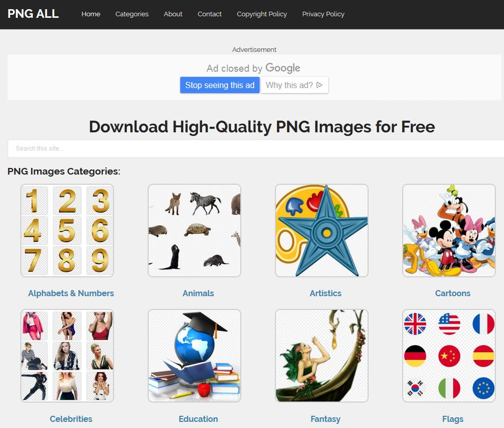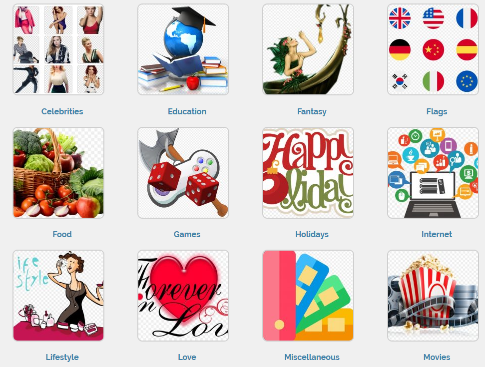 这也是国外的一家提供免费PNG图片资源下载的网站,素材类型丰富,除了可以找到常规的图片抠图素材,还可以找到一些设计字体,修饰元素的图片素材。
