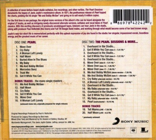 珍妮丝单飞后共发行了二张个人专辑,在1970年10月珍妮丝因服用药物过多而殞命,结束的她短暂而灿烂的一生。Pearl发行於1971年1月,马上站上告示牌专辑榜达9週之久。AMG 五颗星满分经典致敬,滚石杂誌评选史上最佳500张专辑之一,双CD录音室完全版本,多收6首曲目的原始专辑,以及9首录音首次发行,绝对是摇滚的旧雨新知必收的终极版本。