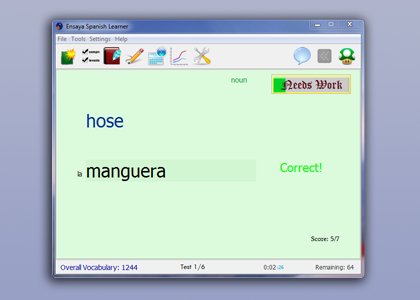 Ensaya is software designed to be the tool you use away from the class room or text book. You have learned or are learning the mechanics, but simply need to put in “the hard yards” and build the vocabulary required to effectively communicate in verbal and written situations. Ensaya gives this challenging process purpose and structure. Ensaya includes a comprehensive list of common Spanish words with English translations. As you progress, new words from this list will be introduced to you and become part of your working vocabulary. Keep track of the actual number of words in your vocabulary and watch it grow. As well as developing your vocabulary, Ensaya will also test you on conjugation endings for every verb in your working vocabulary. Top Features 13000+ Words: Learn over 3000 Spanish words already entered. Starting with the most commonly used words first. 2Conjugate: Practise and improve your conjugations skills. For all tenses and with every verb you have in the list. 3Listen to How it Sounds: Learn faster and improve your pronunciation. Listen to how the word sounds while testing. Every one of the 3000+ words is accompanied with recorded sound. Core Features Automatic Levelup Ensaya will automaticaly levelup words depending on how well you know them. It generates tests to learn based on the level of each of word. You are also able to set the number of "new words" in each test. Don't forget words you have already learnt. Your vocabulary will continue to grow, by not forgetting words that you have already learnt. Older words which you get wrong will level down and therefore appear more frequently in tests until they level up again. Monitor Vocabulary Monitor the number of words in your vocabulary, and watch it grow! Add and Edit Words Entries are fully customisable. And can be moved up and down the list so they appear sooner or later in your development. Record your Own Voice Not only can you listen to the prerecordings of a native (Mexican) speaker. You can record your own voice for words you add or wish to re-record. Impress your Mexican friends Learn the States and Captials of Mexico. With an added extra test. 代码 ÜÜÜÜÜ Ü²²²²Ü Ü ßÛÛÛÛÛÛ²²ÜÜ ÜÛÛÛÛÛ²²ß Ü ÜÛÛÛÛÛÜÜÜßßÛÛÛÛ²²ÛÜ Ü ß Ü ÜÛÛÛÛÛÛßß ÜÛÛÛÜ ²ÛÛÛÛÛÛÛÛÛ²²ÜßÛÛÛ²²Û² ÛÜ ÜÜ ß ÛÛÛÛÛßßܲÛÛÛÛÛÛÛÛ ÛÛÛÛÛÛÛÛÛÛÛÛ²² ßßÛÛ²²ÛÝ ÞÛ° ÞÛ ÜÛÛÛßß Ü²²²ÛÛÛÛÛÛß ÜÛ ÛÛÛßßßßßßÛÛÛÛÛ²Ý ÛÛ²²ÛÜ ÜÛ± °ÛÛÜ ÜÛÛÛß ß²²ÛÛßßÜÛÛÛÛÛÛÜ ÞßÜÛÛÛÛÛÛÛÛÛÜÜßÛ ÛÛ²ÛÛÛÜÜÜÜÛÛÛß Ü ß²ÛÛÛÛÛß ÞßܲÛÛÛÛÛÛÛÛÛÛÝ ÛÛÛÛÛÛÛÛÛÛÛÛÛÛ²Ý ßÛ²ÛÛÛÛÛÛßß Ü²Ý Ü ßß Û²²ÛÛÛÛÛßßÛÜÜ ÛßÜÜÜÜÜÜÜÜßßßÛÛÛ² ßßßß ÞÛ² Û²Ý ²ÛÛßÛÜÜßßßß ÜÜÜÜÜÜÜÜÜÜÜÜßßßÜßßÝ ÛÛ ÛÛ ßÜÛßß ÜÜÛÛÛÛÛÛÛÛÛÛÛÛÛÛÛÛÛÛÛÜÜßÜ ßÛ Þ± Û ÜÜÛÛÛÛÛÛÛÛÛÛÛÛÛÛÛÛÛÛÛÛÛÛÛÛÛÛÛÜ ÜÜÛÝ ßßÜ ÜÛÛßÛÛÛÛÛÛÛÛÛÛÛÛÛÛÛÛÛÛÛÛÛÛÛÛÛÛÛÛÛÛÜ Üß ßÜ ÜÛÜ ÛÛÛÛ²ÜÜßßÛÛÛÛÛÛÛÛÛÛÛÛÛÛÛÛÛÛßßßܲÛÛÛÛ² Û ÜÛÛÛÜ Û ÜÜÝ Û ÞÜ ÞÛÛÛÛÛÛÛ²²ÜßÛÛÛÛÛÛÛÛÛÛÛÛßßÜÜÛ²²²ÛÛÛÛÛÛ± ÞÝÞÛ Û ÛÝÞÝ Ûß ÜÛÛÛÜ ßÜ ÛßÜ ßÛÛÛ²²ÜÛÛÛÛÛÛÛÛÛÛÜÛÛÛÛÛßßß ÜÜßÛ± ÜÛÛß Û ÛÛÛÛÛÛÛ Û ÞÝ ÛÛ Û ÛÛ ÞÝ ßßß²²²±Ü ßÛÛßÛÛÛÛÛÛÛÛÛßÛÛÛß ÜÜܲ²²²²ÝÛ ÛÛ±Ý ÞÝÞÛ Ü ÛÝÞÝ Þ ÛÛÛÛÛÛÛ Ý Þ±° ß²±±Ü ß²ÜßÛÛÛÛÛßܲÛß Ü²²²²²ßß ÜܲÝÛÛ±Û ÛÜßÛÛÛßÜÛ Ý ÞÛ ß ÛÝ Þ Û² ß²±Ü ²²ÞÛÛÛÝÛ²ß Ü²²²²ß °±² Û±ÛÝ ßÝ Û Þß ÞÜ ßÛÛÛß ÜÝ ÛÝ ß²±Ü²ÝÛÛÛÞ² ܲ²ßß ±±ÞÛ±Û ßÛß ß±ÜÜÛÜÜ±ß ÞÛÜ ß²²ÛÛÛÛÛÛݲ²ß ±ßÛ±ÛÝ ßßß Ü²ÜßÛÜÜ ²²ÞÛ²²²ÛÛ²ß ÜÛÞÛÛÛÛ ÞÛÛÛ²²Ü²ßÛÛÜÜÜÜܰÛݲ²ÛÛÛÞÜ ÜÜÜÛßßÜÛ²ÛÛÛÛ ÛÛÛÛÛÛÛÛÛÛÛÛÛÛÛÛÛÛß²ÛÛÛÛݲÛÛÛÛÛÛÛßßßÛÜÛÛß±²²Û± ÛÝ ÞÛÛÛÛÛÛÛÛÛÛÛÛÛÛÛÛ ²ÛÛÛÛÛ²Þ²ÛÛÛÛÛÛÛÛÛÛÛÛÛ²ÜÞ²²±°ÛÛ ²ÛÛÛÛÛÛÛÛÛÛÛÛÛß ²ÛÛÛßܲÜß²²ÛÛÛÛÛÛÛÛÛÛÛÛÛ² ÛÛÛÛÛ ²ÛÛÛÛÛÛÛÛÛß ßÞ²²ÛÛÛÛÛÛ±Ü Û²ÛÛÛÛÛÛÛÛÛÛÛÛÛ ßßß ßÛÛÛÛÛÛß Ü²²Ü ²²ÛÛÛÛ Üß ²²ÜßÛÛÛÛÛÛÛÛÛÛÝ ßÛÛÛ Ü²Û²ß²ÜÜ ßßß Ü²ß²Üß²±ÜßÛÛ²ÛÛÛÛÛ ÛÛ ²Û²ÜÛßܲ²ÛÛÛ²²²²Üß²ÜÛ± ÞÛÛÛÛÛß ß²ÛÛ ÛÜÛß ßÛ ² Û °ÛÛÛß ÞÛÛÛß² ÛÜÛÛÜÜÜÜܲÛÜßÜÛ߲߱Ûß Ü² ²Ûß²ÜÛß²ÛÛ²ÛÛÛßÛ²²Ü²²Ü²ßÜ Üß Þß²ÛÛß²ÛÛÜßßÛßßܲ²²ß²ÛÜ²Ý ß Û²ß²ÛÛܲßÛÛÛÜÛÛ²ßßܲÛß²²ßÝ ÛßÛÛ²ßßÛÛÛÜÜßÛßÜܲ²ßßܲÛÜÛ ß ÛÜÛÛ²²ÜÜßÛÛÜÛÜÛßÜÜÛ²ßÛÜÝ ßÜ Ü²ÜÛßÛ²ÛÛ ²ÜÛÜÛ ²ÛÛ ²²Ý ² Ü Û² ²²Û ²²ß²ÛÜÛÜÛ²ßÛÞÛÜÛ² Ü ß Ûßܲ۲ÜßÛ Û Ûßܲ ÛÞÜÝ ²ÝÞÛ۲߲ÛÛÛÛ۲߲ ² ²ßÜ Ü Ü ß Þ ²²ÛÜßÛܱÜÛßܲ Û Û ß Ü ß Ü ÜÛß ÜÛß Û² ßß߲ܲ߱²² Ü ß Ü ÛÜ ÛÜ ÛÛ ÛÛ ß Û۲߱߱ßÜ Ü ÛÛ ÛÛ ÛÛ ÛÛ Üß ÞÛ±±ß ß ÛÛ ÛÛ ÛÛÛ ÛÛÛ ± ÛÛÛ ÛÛÛ ÛÛÛ ÛÛÛ Ü ÛÛÛ ÛÛÛ ÞÛÛÛ ßßß ßßß ÛÛÛÝ ÛÛÛÝ ±±±±±±±±ÜÜÜ ±±±± ±±Ü ±±Ü ±±±± ±±Ü ±±±± ÞÛÛÛ ÛÛÛÝ ÛÛÛÛÛÛÛÛÛÛÛÛÜ ÛÛÛÛ ÛÛÛÝ ÛÛÛÛ ÛÛÛÛ ÛÛÛÛ ÛÛÛÛ ÞÛÛÛ ÛÛÛÝ ÛÛÛÛ ßßÛÛÛÛÛÛ ÛÛÛÛ ßßßß ÛÛÛÛÛ ÛÛÛÛ ÛÛÛÛÛ ÛÛÛÛ ÞÛÛÛ ÛÛÛ² ÛÛÛÛ ßÛÛÛÛÝ ÛÛÛÛ ÛÛÛÛ ÛÛÛÛÛÛ ÛÛÛÛ ÛÛÛÛÛÛ ÛÛÛÛ ÛÛÛ² ÞÛÛ² ÛÛÛÛ ÞÛÛÛÛ ÛÛÛÛ ÛÛÛÛ ÛÛÛÛÛÛÛ ÛÛÛÛ ÛÛÛÛÛÛÛ ÛÛ