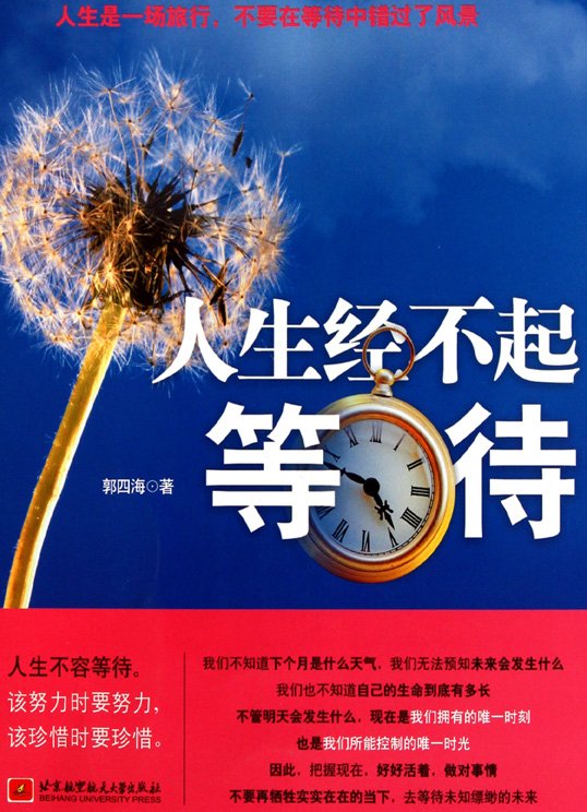 我们不知道下个月是什么天气,我们无法预知未来会发生什么,我们也不知道自己的生命到底有多长,不管明天会发生什么,现在是我们拥有的唯一时刻,也是我们所能控制的唯一时光,因此把握现在,好好活着,做对事情,不要再牺牲实实在在的当下,去等待未知缥缈的未来,本书告诉我们人生不容等待,该努力时要努力,该珍惜时要珍惜。