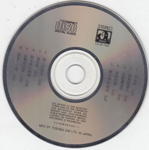 : 01.回来吧 02.同是寂寞人 03.求你讲清楚 04.绝对感激 05.听不到的说话 06.痴心的恋火 07.每段路 08.你令我快乐过 (无线电视剧"新扎师兄"主题曲) 09.在期待恋爱 10.甜蜜十六岁