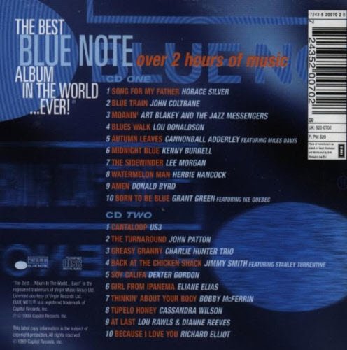The Best Blue Note Album in the World Ever may boast a silly title, but it's hard to argue with what's on this double-disc sampler. Not all of the label's greatest artists are here, but everything is representative, showing how hard bop like John Coltrane's "Blue Train" and Lee Morgan's "The Sidewinder" coexisted with soul-jazz from Grant Green ("Born to Be Blue"), Jimmy Smith ("Back at the Chickenshack"), and Horace Silver ("Song for My Father"). It is true that US3's "Cantaloop" sounds distinctly out of place here and that the latter-day stuff, no matter how good it is, isn't quite as magical as the classic era, but there's no denying that The Best Blue Note Album in the World Ever provides a lot of bang for the buck. ~ Stephen Thomas Erlewine