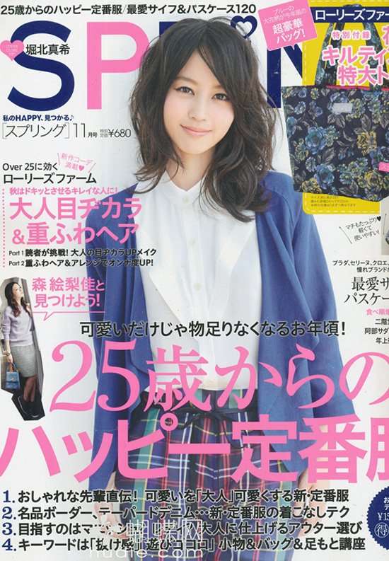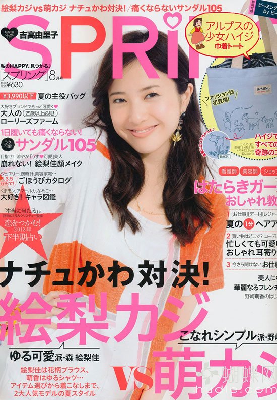 《Spring》就像春天一样,美丽繽纷却清新宜人,这就是Spring给人的印象。从乾净的妆感、纤细的饰品里,依旧看得出个性的展现,甜美讨喜但绝不是呆板乖乖牌。细心为读者呈现每一季的流行单品和小物,并且请到名人来为你提供穿搭想法,不论春夏秋冬,都不用伤透脑筋就能成为最时尚的目光焦点。