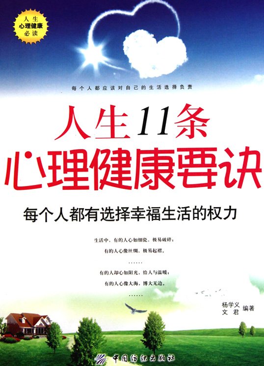 生活中有的人心如细瓷,极易破碎,有的人心像丝绸,极易起褶,有的人却心如阳光,给人与温暖,有的人心像大海,博大无边,每个人都有选择幸福生活的权力,本书旨在帮助读者了解心理健康调适和修炼方面最前沿的知识,书中用了很多故事和实例来启发读者了解心理健康问题的秘密。