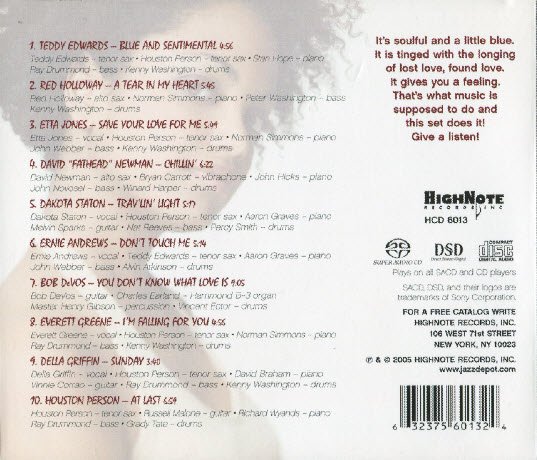 : 01. Blue And Sentimental - Teddy Edwards 4:58 02. A Tear In My Heart - Red Holloway 5:47 03. Save Your Love For Me - Etta Jones 5:52 04. Chillin' - David 'Dathead' Newman 6:37 05. Trav'lin' Light - Dakota Station 5:19 06. Don't Touch Me - Ernie Andrews 5:17 07. You Don't Know What Love Is - Do DeVos 9:03 08. I'm Falling For You - Everett Greene 4:58 09. Sunday - Della Griffin 3:43 10. At Last - Houston Person 7:00
