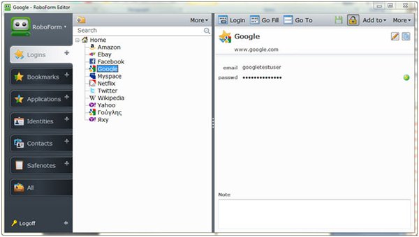It's now easier than ever to login to your favorite websites and applications. RoboForm makes the process effortless by automatically saving, then entering your usernames and passwords. Simply click and login-similar to a browser bookmark! You'll never need to remember or type another password again.
