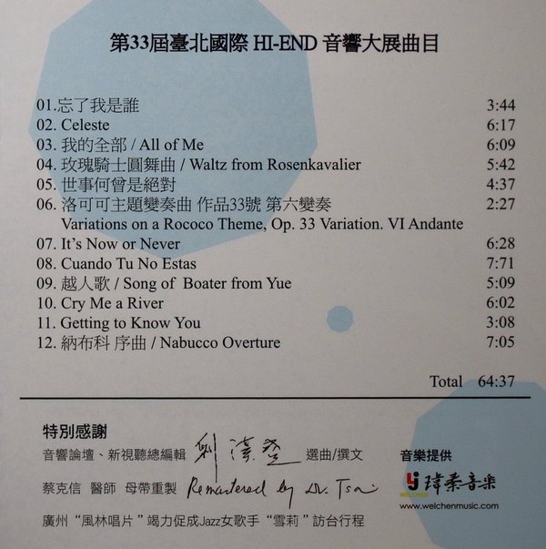 专辑中文名: 第33届台北国际HI-END音响大展纪念CD
