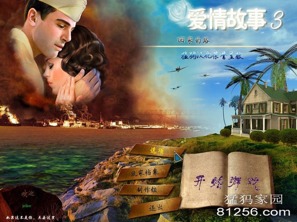 本资源仅供学习分享,请使用完毕之后及时删除,勿做商业传播,如需转载,请于发布2天后转载,并保留完整汉化信息!更多游戏汉化,尽在猛犸家园,欢迎您的加入! ※※※※※※ 游戏信息 ※※※※※※※ 游戏名称:爱情故事3:回家的路 英文名称:Love Story 3: The Way Home [BETA] 游戏类型:冒险解谜 游戏开发:MEDIA ART 游戏发行:Big Fish Games 游戏平台:PC 发售时间:测试版2012年11月 ※※※※※※※ 游戏介绍 ※※※※※※※ MEDIA ART开发,Big Fish Games发行的一款冒险解谜游戏。 回味爱情故事2:海滩小屋,回味纯洁无暇的初恋。桑迪依然无法忘却被遗弃40年的海边小屋,她必须回到自已一直试图忘却的地方完成父亲的遗愿。你要帮助桑迪抚平失去初恋的痛苦,让她坚强起来。 那么在爱情故事3这条回家的路上,又会有什么温馨而感人的故事悄然发生…… 我们总会抱怨着世态炎凉人情冷暖,我们也赏玩过各种恐怖扭曲暗黑破案追凶的AVG游戏,那么在这个寒冷的冬天,就让爱情故事3给你带去一丝温暖,亲,快过年了,也要记得回家的路。(不好意思突然想到这个……) 测试版虽然简短,但聊胜于无,让我们一起期待正式版的发布,届时猛犸家园一定会第一时间呈献给大家~(不管你信不信,反正咖啡女王是信了) 【汉化名单】 猛犸汉化组荣誉呈献