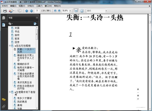 : 前言 鸣谢 走出无性婚姻 失衡:一头冷一头热 障碍存在于男人也存在于女人之中 婚姻的杀手 每两对夫妻有一对离婚 不理会他的要求会极大地杀伤感情 渴求完美生活 积极主动是良好的开始 生理需求低下者指南 有多少才算够 我的焦虑 真相 节奏 性感 焰火 没有情绪怎么办 关注对方 相亲相爱 感觉良好 婚姻是双向通道 真心给予 很久没有感觉了 是什么造成的低迷 三分之一的美国女性没有高潮 女性的问题 男性的问题 生理原因 …… 生理需求旺盛者指南 牵手共爱