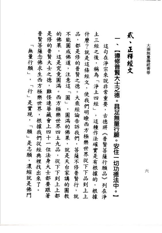 这次我们在大觉莲社利用星期天的时间,预定是四次,一共有八个小时给诸位介绍《大乘无童寿经》,《无量寿经》在净土宗称为大经,在美国也曾经讲过几遍了。在过去几年,台湾印《大藏经》已经超过十次以上,这是佛门里的一桩大事,数量也相当可观,流通到全世界。商务印书馆将《四库全书》也印出来,世界书局接著印《四库全书荟要》。这是在中国古来的典籍在非常殊胜的因缘下,先后都出版了。
