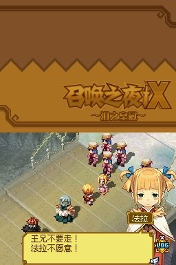 著名的SRPG系列游戏《召唤之夜》在NDS上的最新作品《召唤之夜X:泪之皇冠》一改其游戏类型风格转向了正统RPG的形式。同时这款作品也将首次采用了系列传统故事舞台“林巴姆世界”(リィンバウム)以外的世界作为了故事背景,这次游戏世界被设定在“伦海姆”(ルーンハイム)并描述了在这个世界上敌对的两大国家的故事。