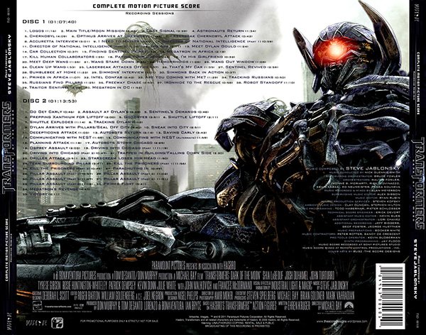 : 01.TF3 1m0 v1 Logos (1:16) 02.TF3 1m1A v21 Main Title / Moon Mission (4:47) 03.TF3 1m1B v21 Lost Signal (2:27) 04.TF3 1m1C v14 Astronaughts Return (1:34) 05.TF3 1m4 v3.0 Chernobyl (4:08) 06.TF3 1m5 v4.1 Optimus Arrives at Chernobyl (1:35) 07.TF3 1m5B v2.00 Laserbeak Chernobyl Attack (0:42) 08.TF3 2m7 v1.0 Accuretta Interview (3:00) 09.TF3 2m7A v5.0 I Need to Matter (0:44) 10.TF3 2m8A v4 Director Of National Intelligence Pt.1 (0:58) 11.TF3 2m8B v5.0 Director Of National Intelligence Pt .2 (1:08) 12.TF3 2m9 v7.0Alt The Ark (2:11) 13.TF3 2m11 v5.02 Meet Dylan Gould (1:24) 14.TF3 2m12 v2.0 Car Collection (0:37) 15.TF3 3m13 v6.00 Finding Sentinel Prime (1:34) 16.TF3 3m14 v4.0 Megatron in Africa (2:17) 17.TF3 3m15 v1 Kill Human Collaborators (0:35) 18.TF3 3m18 v2.0 Paying Your Dues (0:44) 19.TF3 3m19 v1.0 I'm His Girlfriend (0:32) 20.TF3 3m21 v9.0 Meet Deep Wang (1:26) 21.TF3 3m21B v1.0 Wang Stare Down (0:25) 22.TF3 3m22 v9.01 Hemorrhoids (1:25) 23.TF3 3m23 v13.0 Wang Out Window (1:07) 24.TF3 3m24A v2.0 Clean Up Wang (0:53) 25.TF3 3m24B v8.00 Laserbeak Attacks Office (0:56) 26.TF3 3m25 v5 That's My Car (1:34) 27.TF3 4m28 v9.0 Sentinel Revived (2:59) 28.TF3 4m29 v5.01 Bumblebee at Home (1:21) 29.TF3 4m31 v1.04 Simmons Interview (1:01) 30.TF3 4m32 v5 Simmons Back in Action (0:36) 31.TF3 4m33 v3 Prime's in Africa (1:06) 32.TF3 4m34 v3.1 Intel Confab (2:42) 33.TF3 4m35 v3.0 Are You Coming With Me (1:29) 34.TF3 5m36 v2.0 Tracking Russians (0:49) 35.TF3 5m38b v3.0 Russians Find Pillars (1:25) 36.TF3 5m39 v1.0 Freeway Chase (3:52) 37.TF3 5m39b v2.0 Ironhide to the Rescue (0:58) 38.TF3 5m40 v2.0 Robot Standoff (1:09) 39.TF3 5m41 v7.7Alt Traitor Sentinel (3:32) 40.TF3 5m42 v1.0 Megatron in DC (1:51) 41.TF3 5m44 v1.0 Go Get Carly (0:45) 42.TF3 5m46 v3.1 Assault at Dylan's (3:28) 43.TF3 6m47 v11.01 Sentinel’s Demands (0:48) 44.TF3 6m48 v9.01 Prepping Xanthium For Liftoff (2:00) 45.TF3 6m50A v16 Goodbyes (3:51) 46.TF3 6m50B v14 Shuttle Liftoff (2:10) 47.TF3 6m50C v4 Shuttle Explodes (1:14) 48.TF3 6m50D v1.0 Tracking Dylan (1:11) 49.TF3 7m51 v1.0 Dylan Arrives W Pillars Seal Off City (4:39) 50.TF3 7m53 v9 Sneak into City (2:51) 51.TF3 7m53B v1.1 Decepticons Attack (1:02) 52.TF3 7m54 v1.11 Autobots Return (2:13) 53.TF3 7m55 v3.00 Saving Carly (3:42) 54.TF3 8m56 v5.0 Communicating With NEST (1:59) 55.TF3 8m56 v6.0 ALT Communicating With NEST (1:59) 56.TF3 8m57 v5.0 Planning Attack (1:18) 57.TF3 8m58 v4.01 Autobots Storm Chicago (2:25) 58.TF3 8m59 v2.17 Osprey Assault (2:02) 59.TF3 8m60 v7.0Alt Pt1 Driving Into Chicago (1:19) 60.TF3 8m60b v3.09 Pt 2 Driving Into Chicago (0:47) 61.TF3 8m62 v3.16 Trapped in Building / Falling Down Side (2:20) 62.TF3 8m63 v3.09 Driller Attack (3:51) 63.TF3 8m64 v1.05 Starscream Loses His Head (1:49) 64.TF3 9m66 v3.14 Teams Surrounding Pillar (3:41) 65.TF3 9m67a v2.0 Kill The Prisoners Pt .1 (1:56) 66.TF3 9m67b v3.0 Kill The Prisoners Pt .2 (0:46) 67.TF3 9m68 v1.06 Parachuting In (0:49) 68.TF3 9m69A v6 Pillar Assault Pt. 1 (0:56) 69.TF3 9m69B v6 Pillar Assault Pt. 2 (1:02) 70.TF3 9m69C v9 Pillar Assault Pt. 3 (1:47) 71.TF3 9m69D v4.0 Pillar Assault Pt. 4 (1:01) 72.TF3 9m69E v3 Pillar Assault Pt. 5 (1:15) 73.TF3 9m70 v12 Prime's Fight (3:40) 74.TF3 9m71 v12 Megatron's Revenge (4:46) 75.TF3 9m72 v6 Victory (2:10) 76.TF3 Battle Glorious v12 (6:04) 77.TF3 Chicago v5 (7:54) 78.TF3 Conspiracy v4 (4:00) 79.TF3 Cwejman CD (3:24) 80.TF3 Death and Return v9 (4:55) 81.TF3 Sentinel v21.4 (3:16) 82.TF3 The Dark v4.0 (3:42) 83.TF3 Iridescent (Linkin Park) (4:00)