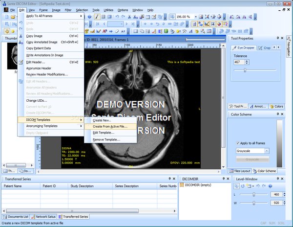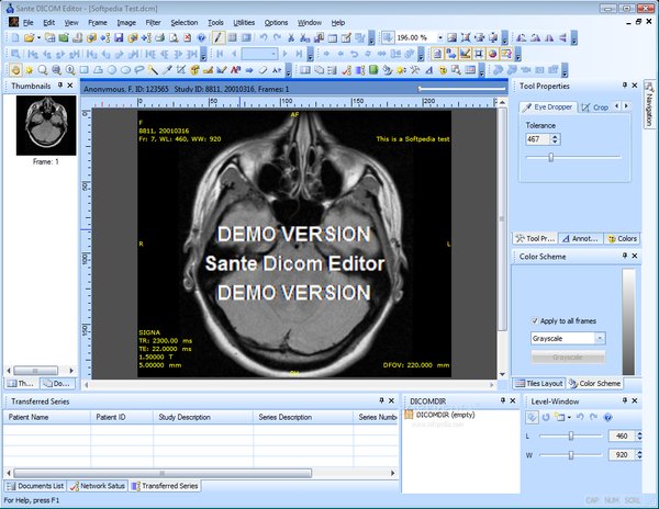 Sante DICOM Editor description A complete and powerful application that can manage DICOM files Sante DICOM Editor is the essential "must have" complementary DICOM software, of a modern and up to date radiology laboratory. Even though a modern lab usually has all the appropriate tools to manage medical images from its modalities, physicians can come to a dead end when they receive images from previous examinations, different modalities or images from another manufacturer. Features that doctors are used to apply on their files like DICOM file editing, measurements, demographic anonymizing, video creation etc, sometimes cannot be applied on images captured from another source. In addition there is no way to manage images from their own lab when they are at home office or when they are using a portable device like a notebook.. Sante DICOM Editor is essential not only to Radiologists but to any specialist that receives patient images from collaborating labs in DICOM format in everyday practice. Whether you are a radiologist, a radiological technologist, a medical imaging researcher or a radiology student, Sante DICOM Editor will cover your needs.
