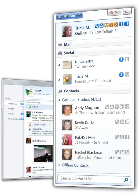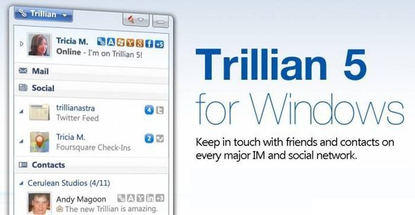 Keep in touch with friends and contacts on every major IM and social network. Trillian for Windows’ clean and pleasant user interface has been carefully designed to smoothly integrate with Windows 7. Our newly-supported Foursquare plugin lets you meet up with new friends and discover new places! Stuck on a netbook with a tiny screen? No problem. Switching between our full and compact user interfaces is only a click away. Trillian 5 is a fully featured, skinnable chat client that supports AIM, Windows Live, Yahoo, Google, Facebook Chat, Jabber and Skype. Trillian 5 have a clean and powerful customizable design that suits gerat with Windows 7. Trillian 5 introduces synchronized chat history, has better streamlined social news feeds, improved Facebook Chat via XMPP and support for Foursquare, LinkedIn, and studiVZ / meinVZ / schuelerVZ chat. 代码 ÜÜ Ü ÛÜÜ ÜÛÛÛ²²Ü ßÛß ÜÜÜÜÜÛÛÛÛÛ ÛÛÛÛÛ ÜÜÛ ÛÛÛ²ß ÜÜÜܲÛÛÛÛÛÛÛßßßßßÛÛÜÛÛÛÝ ÛÛÛ²Ý ÜÜÜÛÛÜÛÛÛÛÛÛÛÛÛÛßßÜÛÛÛÜ ßÛÛÛÛß ßÛÜ ÞÛÛ²ÜÛÛÛÛÛÛÛÛÛÛÛÛÛÛÛ²ß ßßßßÛÛÛÛÛÜÜ ÜÛÛÝ ÞÛÝ ÞÛÛßÛÛÛÛßßßßÜÜÛÛÛ² Û²Ü ÜÜÛÛ²²²ßß ßßÛÜ ÜÛß ÛÛÛ²Ü ßÛÛÛ²Ý ÛÛ ÜÛÛÛ²²ßÛÝ ÛÛßÛÛÜ ßßßß Ü ÜÛÛßßÛ²Ü ßÛÛÜÛÛ² ÞÛÝ ÞÛÛÛ²² Þ² ÛÛ ÞÛÛ²²ÜÜ ß²ß Ü Þ²²Ý ÛÛÛÛß °ÛÝ ÛÛÛÛ²Ý Û± ²² ÛÛÛ²²ßÛÜ ß²ß Ü²²ß ÛÝ ÞÛÛÛÛÛÛÛ² ÛÛÛÛ²² Þ² ±± ÛÛÛ²Ý ÛÝ ßÜ Üܲ²ß ÜÛß ÞÛÛ۲ݰÜÛ ÞÛÛÛÛ²²ÜÛÝ °° ÛÛÛ²ÝÞÛ ÞÛ ÜÛÛßÛ² ÛÛ ÞÛÛÛ²Ý ÛÛ ßÛÛÛÛÛÛÛÛ °° ÞÛÛ²²ßß ÛÛÝ ÛÛÛÝÞ²Ý ÞÛßßßÜ ÛÛÛ²² ÞÛÝ ÜßßßßßÛÛÛÜ ÛÛ²ß ÜÛÛÛ² ßßÛÜÛ² ÞÝ ÞÝ ²ÛÛ²² ÞÛ² ßÛßÜÜÜÜ ßÛÛÜÛÛ² ÜÜÛÛßß ßÛ²Ü ß²²Ü ß ÜÜß ±ÛÛÛ²²ÜÛ²²ÛÛ²²ßÛßßÜ ßÛÛÛ°ÜÜÛÛßß ÜÜÜÜÜßÛ²²ÜÜ ßßßß ÜÜÜÛÛÛÛÛÛßßßÛ²²ÝÞÝ ÞÛÛÛßß Ü²²²²ÛßßÛÛÛ²²ß ßÛÛÛÛßßßß ÜÜÜßßßÛ²²ÜÛÜ ÜÛß Ü²²ßÜÛß ß²ß ÜÛÝ Ü²Ü ß ÜÜÛÛßß ßß²²²ÛÛÛßß Þ۲ݰ²Ý ÜÛÛÛÛÜ ß ÜÜÜÛÛßßß ß²²Üß²Ü ÜÛ ßÛÜßÛÛÛÛßß ßßßÛÛÜÜÜÛß ÛÜ ÜÛÛÛ ÞÛÝ Ü TE 2013 PRESENTS Ü ÞÛÝ ÛÛÛÜ ÛÛÛ ÜÛß ß²ß ß²ß ßÛÜ ÛÛÛ ÛÛÛßßß ÜÛß ÜÛßßß ßßßÛÜ ßÛÜ ßßßÛÛÛ ÜÜÜÛÛÛÜÜ ÜÜ ÛÛÜÜÜÛÛ ANOTHER FINE RELEASE ÛÛÜÜÜÛÛ ÜÜ ÜÜÛÛÛÜÜÜ ßÛÜÜ ÜÜÛß Release: Trillian 5 Pro for Windows v5.3.0.11 BETA (c) 2013 Cerulean Studios Date: 01/03/2013 Cracked By: Twisted EndZ Release Type: [ ] Registration/Serial Crack [ ] Activation Crack [ ] Trial Crack [X] Server Check Crack [ ] Serial [ ] Hidden/Added Features Enabler [ ] Other [ ] Loader Patcher [ ] Patch [X] Precracked [ ] RegFile [ ] Keygen Ü Ü Ü²Ü ß²ß ß²ß Ü²Ü Ü²²ÛÛÛÜ ßßÜÜÜÜ ÜÜÛßßß ßßßÛÜÜ ÜÜÜÜßß ÜÛÛÛ²²Ü ßß²²ÛÜßßÛÛÜÜÜ ÜÜÜÛÛ RELEASE NOTES ÛÛÜÜÜ ÜÜÜÛÛßßÜÛ²²ßß ß²ÛÜ ÜÛÜ ßÛÜÜ ÜÜÛß ÜÛÜ ÜÛ²ß Ü Þ²ÛÝ ß ß ÞÛ²Ý Ü Ü²²ÜÜÛÛß ßÛÛÜܲ²Ü ßß ßß ***READ INSTALLATION NOTES***: Please scroll down to the installation instructions for an important note! Clean. Simple. Powerful. Streamlined social news feeds: Trillian 5's Facebook, Twitter and LinkedIn support is fast, uniform and integrated. · Comprehensive: More types of feeds, like Facebook events and Twitter searches. · Flexible: Store feeds in your contact list and/or system tray. · Quick: Instant updates to all services are just one click away. · Interactive: View likes and read/write comments directly within Trillian. · Detailed: Links and pictures are expanded automatically to avoid opening the web browser. Designed for Windows 7 · Trillian 5 feels right at home in all versions of Windows. Our clean and pleasant user interface has been carefully designed to smoothly integrate with the operating system. Synchronized chat history · Never miss a message again with Trillian 5's fully synchronized chat history. The power of the Trillian network ensures your contact list, accounts, and chat history are automatically shared between your desktops and phones! Foursquare with GPS support · Our newly-supported Foursquare plugin lets you meet up with new friends and discover new places! Powered by the GPS support in Windows 7, you can even check-in right from Trillian! A truly compact interface · Stuck on a netbook with a tiny screen? No problem. Switching between our full and compact user interfaces is only a click away in Trillian 5. No need to change skins, no need to wait, and no need to worry about Trillian hogging your desktop. Compact, slim and fast. What is Trillian? Connect to your IM, mail, and social networks in one place · Trillian can connect to AIM, Windows Live, Yahoo!, Google, Facebook Chat, Jabber, Skype and a lot more. Trillian 5 introduces improved Facebook Chat via XMPP and support for Foursquare, LinkedIn, and studiVZ / meinVZ / schuelerVZ chat! Fully customizable and extensible · With a multitude of options and a comprehensive library of plugins, skins and skin packs, you can extend and customize Trillian in any way imaginable. Show RSS feeds or even play music while chugging along with a contact list right out of Terminator 5. Optimized for Windows · Trillian is built directly in C++ using native Windows APIs. Not relying on third-party runtimes or toolkits means lower memory consumption and direct access to native Windows features as soon as they're made available to developers. Trillian 5 for Windows is the smoothest and fastest version of Trillian ever! Whats New In v5.3.0.11?: ====================================== Trillian for Windows Changelog 5.3 Build 10 -> 5.3 Build 11 December 11, 2012 to January 2, 2013 ====================================== ====== 