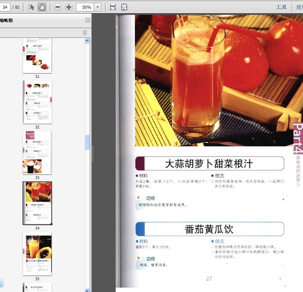 : Part 1 儿童保健蔬果汁 胡萝卜山楂汁 调和果菜汁 菜叶汁 番茄果汁 红枣苹果汁 鲜柠檬汁 葡萄柚柠檬蜜 抗病毒奶昔 南瓜汁 白萝卜果汁 菠萝油菜汁 猕猴桃橙汁 苹果芹菜汁 苹果菠萝生姜汁 鲜杏猕猴桃汁 双瓜汁 洋葱块根芹黄瓜汁 树莓苹果汁 桃柿子汁 Part 2 健康青少年蔬果汁 柑橘卷心菜汁 补充能量奶昔 提神综合果汁 花椰菜汁 南瓜酸奶 芹菜洋葱汁 香瓜油菜柠檬汁 胡萝卜草莓汁 苹果菠萝汁 酪梨牛奶 苹果牛奶汁 纯树莓汁 西兰花胡萝卜红椒汁 桃子牛奶汁 鲜奶西瓜汁 草莓柠檬汁 柳橙菠萝汁 菠萝蜜盐汁 紫沙果酿美肤汁 仙桃蜜汁 青果薄荷美白汁 橘香除斑汁 胡萝卜养发汁 猕猴桃菠萝汁 Part 3 滋养美体蔬果汁 柠檬苹果汁 菠萝芹菜汁 黄瓜酸奶矿物汁 菠萝苦瓜仙女果汁 香菜橙柠汁 强化指甲汁 高VC鲜果汁 百香果汁 芒果芦荟优酪乳汁 菠萝苦瓜汁 新西兰黄金猕猴桃汁 猕猴桃薄荷汁 胡萝卜美颜汁 柳橙综合果汁 鳄梨牛奶 清凉草莓汁 菠菜芹菜蜜汁 茴香黄瓜汁 大蒜胡萝卜甜菜根汁 番茄黄瓜饮 生木瓜柠檬汁 葡萄柚杨梅汁 卷心菜芹菜苹果汁 木瓜奶饮 Part 4 瘦身减肥蔬果汁 助消化果汁 西瓜菠萝柠檬汁 猕猴桃菠萝苹果汁 密奶饮 番茄菠萝汁 卷心菜汁 樱桃汁 葡萄蜜汁 胡萝卜苹果芹菜汁 甘薯韭葱胡萝卜汁 豆瓣菜苹果汁 番茄酸奶饮 鲜奶李子汁 芒果椰子汁 生姜莴苣汁 葡萄柚薄荷柠檬汁 韭菜青椒汁 Part 5 岁恋上蔬果汁 小黄瓜蜜汁 芹菜柚姜味汁 番茄圆白菜苹果汁 青苹果芹菜蜜 伊甸园混合饮 芹菜综合果汁 哈蜜瓜牛奶 青椒青苹果汁 蛋蜜汁 蜂蜜牛奶果汁 木瓜生姜汁 胡萝卜苹果汁 苹果葡萄汁 明目蔬菜汁 芹菜胡萝卜奶昔 西瓜桃子汁 青木瓜汁 橙子胡萝卜汁 苹果菠萝生姜汁 Part 6 养生颐年蔬果汁 百宝汁 丝瓜苹果汁 黄瓜葡萄香蕉汁 活血汁 菠萝西瓜菠菜汁 猕猴桃菠萝苹果汁 生菜梨汁 菠菜柳橙汁 菠菜甘蓝汁 苹果莲藕汁 猕猴桃椰汁 鲜杏汁 芒果柚子汁 芒果奶汁 柳橙蜜汁 莲藕蔬果汁 Part 7 烟民必饮蔬果汁 芹菜汁果汁 苦瓜胡萝卜汁 南瓜奶饮 小黄瓜胡萝卜汁 香蕉芹菜汁 白菜苹果汁 芹菜醋汁 西瓜黄瓜汁 纯芒果汁 芹菜芦笋葡萄汁 复合黄瓜汁 Part 8 酒民必饮蔬果汁 密瓜牛奶汁 小玉西瓜汁 芦荟甜瓜橘子汁 猕猴桃幻境 藕汁 葡萄菠萝杏汁 红萝卜苹果芹菜汁 菠菜野菊花水 莲藕甘蔗汁 西红柿柠檬汁 Part 9 健康配餐蔬果汁 杨梅汁 草莓酸奶饮 清凉番茄饮 鲜姜橘子汁 黄椒生姜汁 荸荠奶汁 葡萄芹菜汁 红萝卜苹果汁 苹果小黄瓜柠檬汁 健胃蔬果汁 黄椒生姜胡萝卜汁 鲜榨苦瓜黄瓜汁 高丽菜汁 Part 10 “三高”应饮蔬果汁 紫甘甜椒苹果汁 丝瓜水 养发蔬果汁 苹果香瓜汁 苹果牛奶汁 番石榴柠檬汁 自制蔬果汁贴士