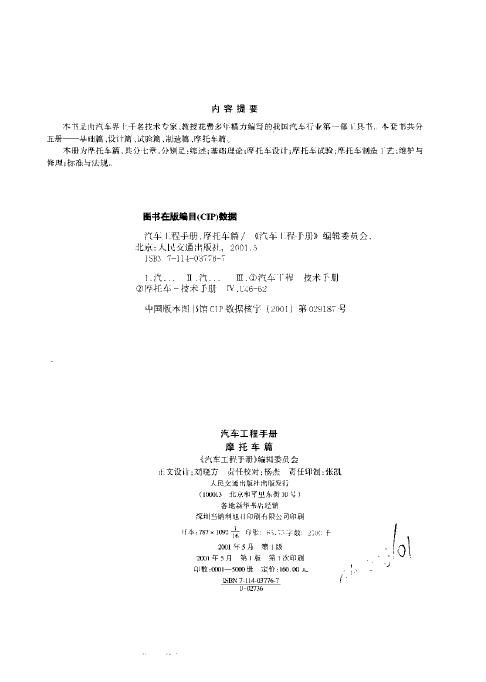 汽车工程手册:摩托车篇(史上最详细的汽车.摩托车理论、技术、维修电子书)扫描版[PDF]