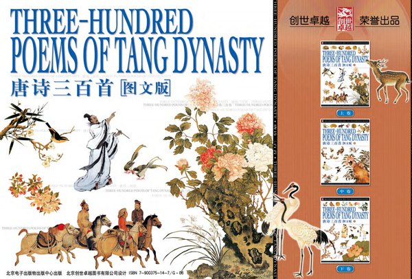 : 唐诗三百首以全新形式诠释中国古典诗歌发展史上的经典之作,领略中华民族封建社会鼎盛时期的文学成就,全方位感受唐诗以及与之相映生辉的中国古代绘画及书法艺术成就的无穷魅力。 本书的一大特色,是每一首诗都尽量配以含有诗意的古画。唐诗中不少精品的确是富有诗情画意的,宋代的苏轼就曾赞盛唐诗人王维“诗中有画”、“画中有诗”,可见我国传统诗、画的意蕴是相通的。本书精选了历代古诗诗意图,使诗情与画意相互渗透,让读者更加容易进入诗境,增加读诗的直观性,并且培养读者丰富的想象力,使读者在既轻松而又趣味盎然的过程中领略到唐诗无穷的文学魅力。