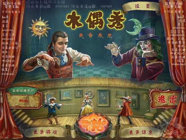 本资源仅供学习分享,请使用完毕之后及时删除,勿做商业传播,如需转载,请于发布2天后转载,并保留完整汉化信息!更多游戏汉化,尽在猛犸家园游戏城,欢迎您的加入! ※※※※※※※ 游戏信息 ※※※※※※※ 游戏名称:《木偶秀5:天命未尽》 英文名称:PuppetShow 5: Destiny Undone [BETA] 游戏类型:冒险解谜游戏 游戏开发:ERS 游戏发行:大鱼 游戏平台:PC 发售时间:2013年1月 版本说明:测试版 ※※※※※※※ 游戏介绍 ※※※※※※※ 《木偶秀5:天命未尽》依旧是以木偶为主题的冒险解密游戏,游戏的画面相较于前作倒是没有太大的提升,游戏的玩法上沿袭前几作的玩法,玩家可在游戏时注意收集工具,一些迷你的益智小游戏很有意思。 在游戏中你是一名侦探,一个小女孩来请求你的帮助,她今天放学回家,发现一只木偶从她的家中跑出来,然而他的爸爸却不见了。她请求你到她的家中查看一下有没有什么线索。这次木偶的出现又预示什么呢? 猛犸汉化组荣誉呈献 网址:81256.com 【汉化名单】