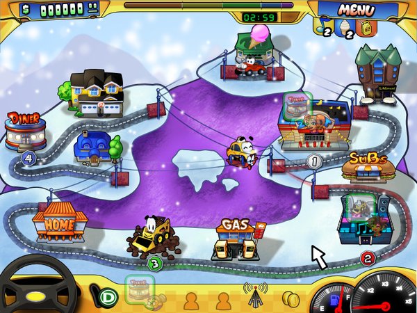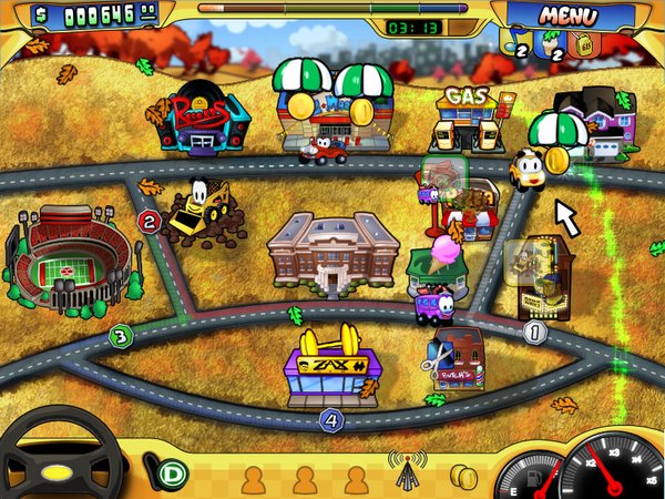 小小出租车—英文名称:GabCab,充满卡通风格的忙忙碌碌运送客人到达目的地的可爱游戏,在一张地图上操作。特别适合孩子和喜欢休闲游戏的人们。也有翻译作《出租车总动员》的。出租车的造型都是拟人化,非常可爱,与Airport Mania 疯狂机场似乎出自“一人”之手?而且作者还专门为该游戏开发了一个单独的网站:GabCab。发动引擎,准备进入《出租车总动员》的娱乐世界中。在游戏中,你将旅行穿越8个不同风格的城市,运用你的策略技巧,快速的运送客人抵达他们想去的地方。甚至也有翻译作疯狂出租车的,但是奇奇玩感觉都不如小小出租车,或者出租车总动员更合适些!