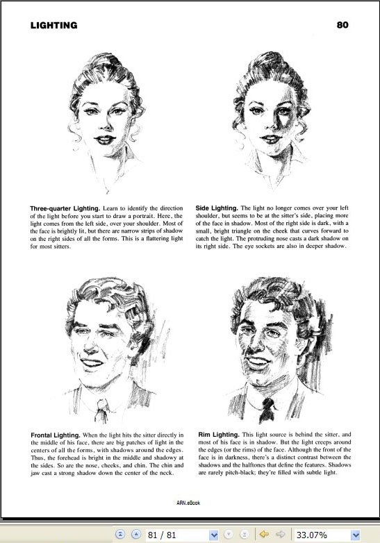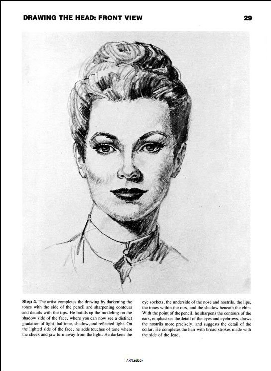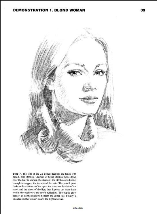: 4 introduction 5 getting started 6 equipment 8 form and proportion 10 front view 11 three-quarter view 12 side view 13 tilted view 14 front view 16 three-quarter view 18 side view 19 tilted view 20 front view 21 three-quarter 22 side view 23 tilted view 24 side view 25 front view 26 front view 30 three-quarter 34 pencil drawing 36 blond woman 40 brown-haired man 44 black man 48 dark-haired woman 52 chalk drawing 54 dark-haire man 58 blond man 62 oriental woman 66 charcoal drawing 68 brown-haired woman 72 black woman 76 gra-haired man 80 lighting