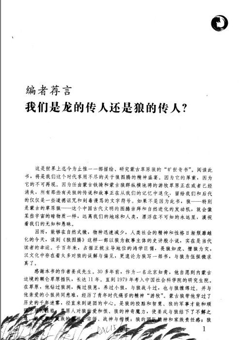编者荐言 我们是龙的传人还是狼的传人?