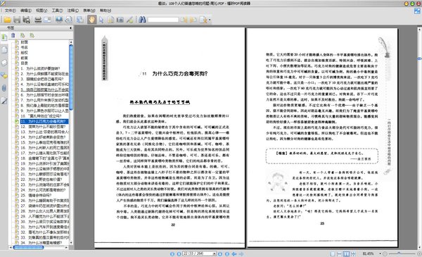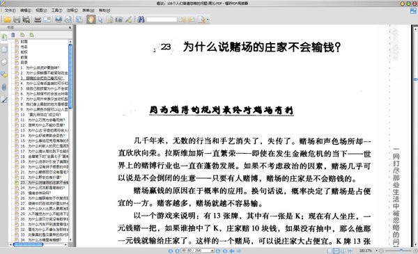 : 1.为什么微波炉要旋转? 2.为什么保鲜膜不能紧贴在金属碗上? 3.眼镜蛇会把自己毒死吗? 4.为什么没有纸盒装的可乐和铝罐装的牛奶呢? 5.挠自己胳肢窝为什么不会笑? 6.为什么掰指节时会发出咔嗒声? 7.为什么用升来表示发动机型号? 8.我们身上最脏的地方是嘟里? 9.为什么黑色衣服可以让人显瘦? 10.“尊扎特效应”成立吗? 11.为什么巧克力会毒死狗? 12.菠菜为什么不能炒豆腐? 13.为什么达·芬奇的画符合人体比例? 14.为什么虾被煮熟会变色? 15.为什么泰坦尼克号海难的死难者这么多? 16.为什么判断人的死亡是困难的? 17.为什么猫从高处跳下也能保持平衡? 18.金庸笔下的“全真七子”真有其人吗? 19.为什么说茶叶引发了美国独立战争? 20.为什么没有狮子栖息的中国,到处都有狮子石雕? 21.为什么蒙娜丽莎没有眉毛? 22.为什么野史也有价值? 25.为什么说赌场的庄家不会输钱? 24.为什么河流都是弯曲的? 25.情绪会传染吗? 26.为什么睡眠有助于恢复皮肤光彩? 27.袋装牛奶在微波炉里加热会爆炸吗? 28.为什么女人比男人更易发胖? 29.人不睡觉为什么不能活下去? 30.为什么诺贝尔奖没有数学奖? 31.为什么汽车开到速度最佳点最省油? 32.眉毛为什么不像头发那样会长得很长? 33.刘备真的是汉景帝的后代吗? 34.为什么冰箱里有蟑螂? 35.为什么林纾不懂外语也能翻译小说? 36.在弱光下看书对视力会有影响吗? 37.男女装扣纽扣的方向为什么会不同? 38.李鸿章为什么被称为“东方俾斯表”? 39.为什么有人被雷击中后还能活下来? 40.为什么古代人的名字和现代人不一样? 41.我们的废旧电脑去哪了? 42.为什么即使方向正确人还是会迷路? 43.为什么安全气囊能够保证我们的安全? 44.为什么多数汽车采用汽油机而不用高效的柴油机? 45.为什么过去远洋航海会死很多水手? 46.饭后百步走对人体有利吗? 47.人类能靠气味来记忆吗? 48.为什么有些双胞胎长得不像? 49.徐达真是因为吃蒸鹅而死的吗? 50.为什么感冒会导致人体分泌物变色? 51.为什么放久的香蕉会变黑? 52.为什么冰是不透明的? 53.为什么说喝果汁不健康? 54.为什么泡茶烧水要讲究? 55.为什么冬天启动汽车比较困难? 56.为什么越野摩托车的排气管上有个隆起? 57.为什么颜色会影响食欲? 58.为什么孕妇要补充叶酸? 59.剩饭剩菜能够保存几天? 60.为什么我们做事会拖拖拉拉? 61.为什么全世界的标准铁车轨都是同样宽? 62.为什么天然食物的提取物对人体不一定安全? 63.狗为什么不出汗? 64.好吃的火锅里会含有罂粟籽吗? 65.包粽子为什么要用箬竹叶? 66.为什么说“功能饮料”言过其实? 67.用辐射来处理食品对人体有害吗? 68.为什么我们会觉得有些人的笑是虚伪的? 69.苍蝇没有肺为什么还可以呼吸? 70.为什么动物会有杀婴行为? 71.为什么对着一个字看得太久会觉得它变陌生了? 72.为什么发明麻醉剂的科学家都不得好死? 73.为什么李森科的错误定理能长久存在? 74.为什么一出广播能引起骚乱? 75.为什么索克尔能以假论文戏弄社会学家? 76.现代军人在战争之中吃什么? 77.为什么说语言表述能影响人的选择? 78.病菌能在室内活多久? 79.为什么说长远的气象情况是不可预知的? 80.有只娶一位妻子的中国皇帝吗? 81.坚硬墙壁为什么会长出植物? 82.为什么说植物吃空气生存? 83.为什么蚯蚓没有眼晴也能辨别光的强弱? 84.植物体内有激素吗? 85.水能切割铜板吗? 86.为什么人坐在教室里面容易昏昏欲唾? 87.为什么植物在春天发芽生长? 88.为什么说大豆和细菌密不可分? 89.为什么向日葵会朝向太阳? 90.紧张的时候为什么嗓子会发干? 91.为什么早期欧洲国王都有绰号? 92.达姆弹,比生化武器还可怕的子弹? 93.中国最早的骑兵出现在哪个朝代? 94.为什么美国没有元帅军衔? ……
