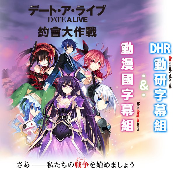 本作主人公五河士道是一名于都立来禅高校上学的二年级生,自少给父母舍弃的他对他人的絶望非常敏感。本身过著平凡生活的他于某天突然遇上大爆炸,在大爆炸之中出现了谜之美少女十香。原来十香是被称为精灵的谜之少女,十香是在30年前造成地球近数亿的人口消失的元凶,现在,她因为给已摧毁了的世界拒絶而重回地球。这次她的再现将会给地球带来摧毁性的未来。但本身过著平凡生活的士道却有方法能够阻止她摧毁地球,那就是与她约会! 【STORY】 普通的高中二年级生五河士道,突然在某一天遇上了一场大爆炸,而在这场大爆炸之中竟然出现一名身穿盔甲手持大剑的神秘美少女。 原来这名少女的真正身份是"精灵",是会给世界带来毁灭性灾难的存在,她的再次出现,将会给地球带来毁灭性的未来!然而主人公士道却有方法阻止世界毁灭,这个唯一能够阻止世界毁灭的方法就是--要与她约会! 【STAFF】 原作:橘公司(富士见书房/Fantasia文库刊) 原作插画:つなこ 监督:元永庆太郎 视觉导演:斋藤久 系列构成:白根秀树 设定考证:铃木贵昭 角色设定:石野聪 机械设定:明贵美加 音响监督:虾名恭范 音乐:坂部刚 音乐制作:日本Columbia 动画制作:AIC PLUS+ 【CAST】 五河士道:岛崎信长 夜刀神十香:井上麻里奈 鸢一折纸:富樫美铃 五河琴里:竹达彩奈 四糸乃:野水伊织 时崎狂三:真田麻美 村雨令音:远藤绫 冈峰珠惠:佐土原香织 崇宫真那:味里 殿町宏人:胜杏里 神无月恭平:子安武人 日下部燎子:高梁碧 川越:井上刚 干本:利根健太朗 椎崎:明坂聪美 中津川:ゴー☆ジャス 箕轮:宇佐美朋子 亚衣:村井理沙子 麻衣:积田佳代子 美衣:月宫绿 ~~~~ DHR人员招幕:http://dhr.candy-sky.net/forum.php?mod=viewthread&tid=472&page=2#lastpost 动漫国人员招幕:http://bbs.dmguo.com/thread-192160-1-1.html 报错:http://dhr.candy-sky.net/forum.php?mod=viewthread&tid=2642&extra=page%3D1 【发布的碎碎念】 琴里太讚了! 本片将会发布 720P 繁体 720P 简体 480P 繁体 ~~