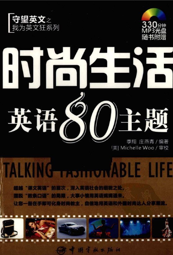 内容介绍:“我为英文狂系列丛书”是一套面向大中学生及英语爱好者的中英文对照版的“英语话题百科全书”,共11个分册,首批出版《世界风情英语80主题》、《中国文化英语80主题》、《商界风云英语80主题》、《时尚生活英语80主题》、《大众偶像英语80主题》等5册,分别用来学习全球风土人情、中国文化、商业新闻和人物动态、流行时尚的生活情趣、大众崇拜的娱乐和励志偶像方面的英语主题。